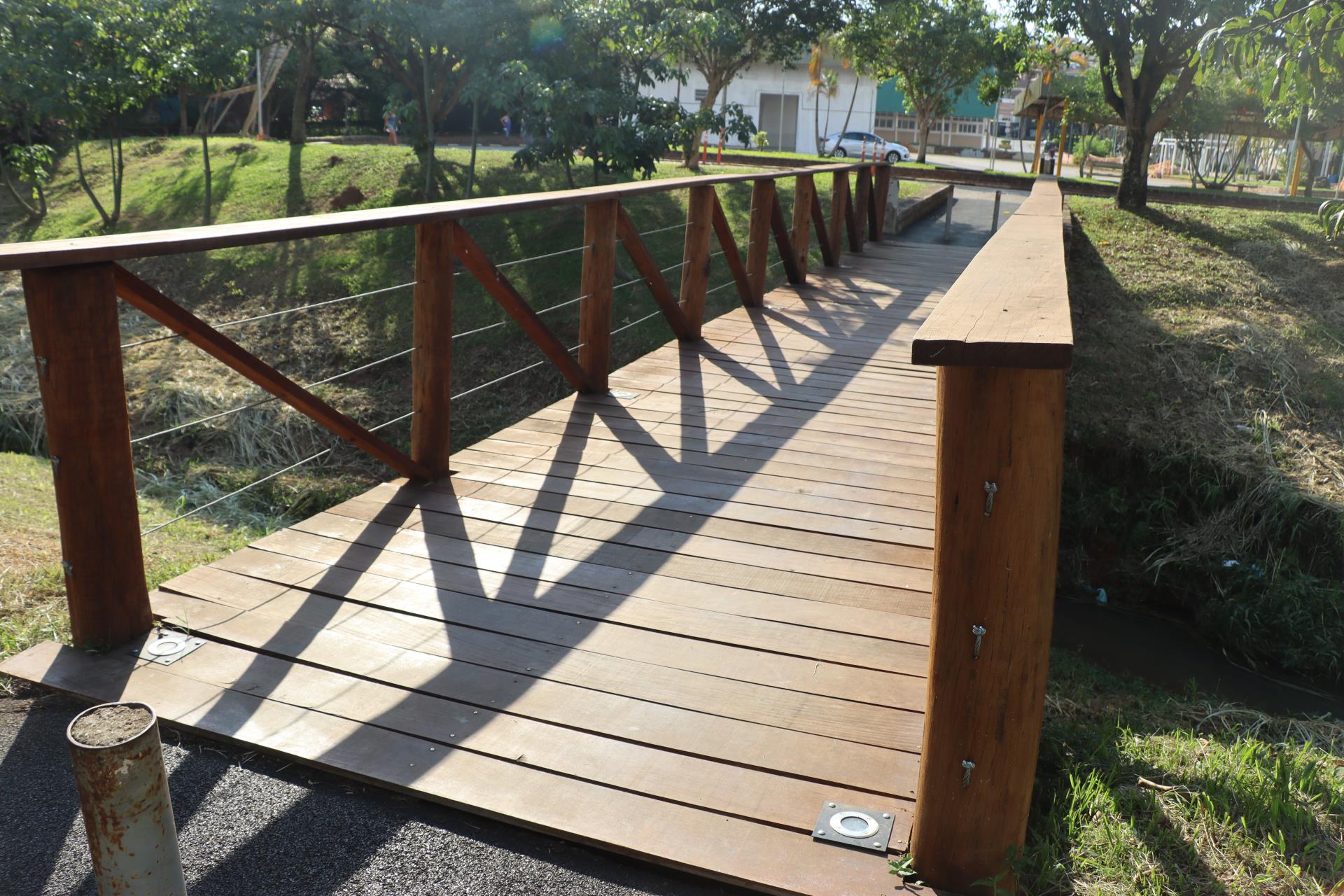 As obras de revitalização das pontes de madeira, que ligam a Praça dos Italianos à Praça dos Imigrantes, incluíram a substituição de todo o madeiramento e de outros materiais, além da iluminação local.